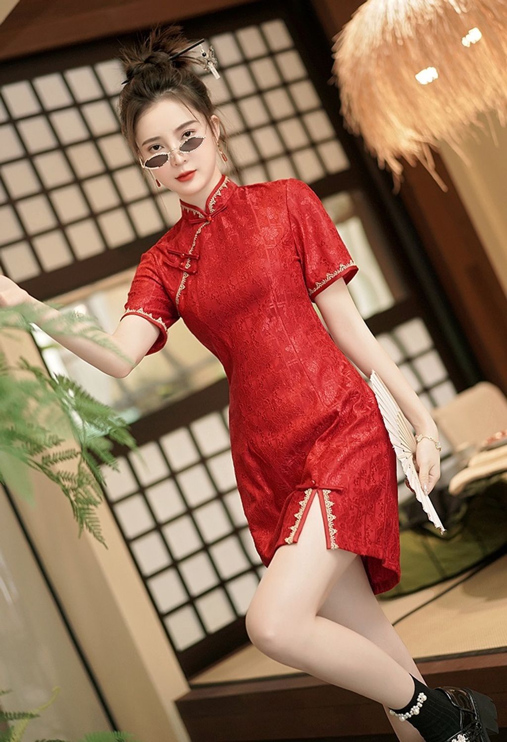 MANDARIN COLLAR LACE CHEONGSAM TFT15874