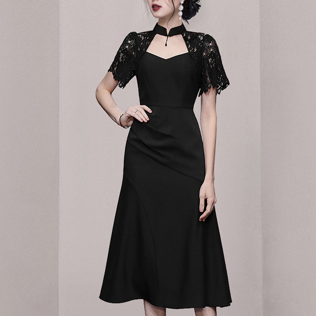HOLLOW LACE MIDI DRESS TFT16916