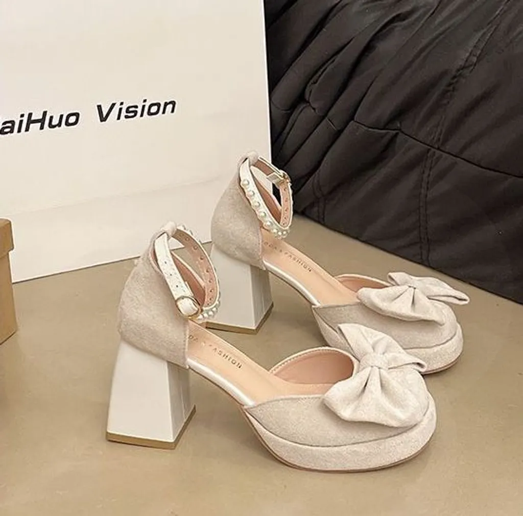 BOW PEARL ANKLE STRAP HEELS TFT19947