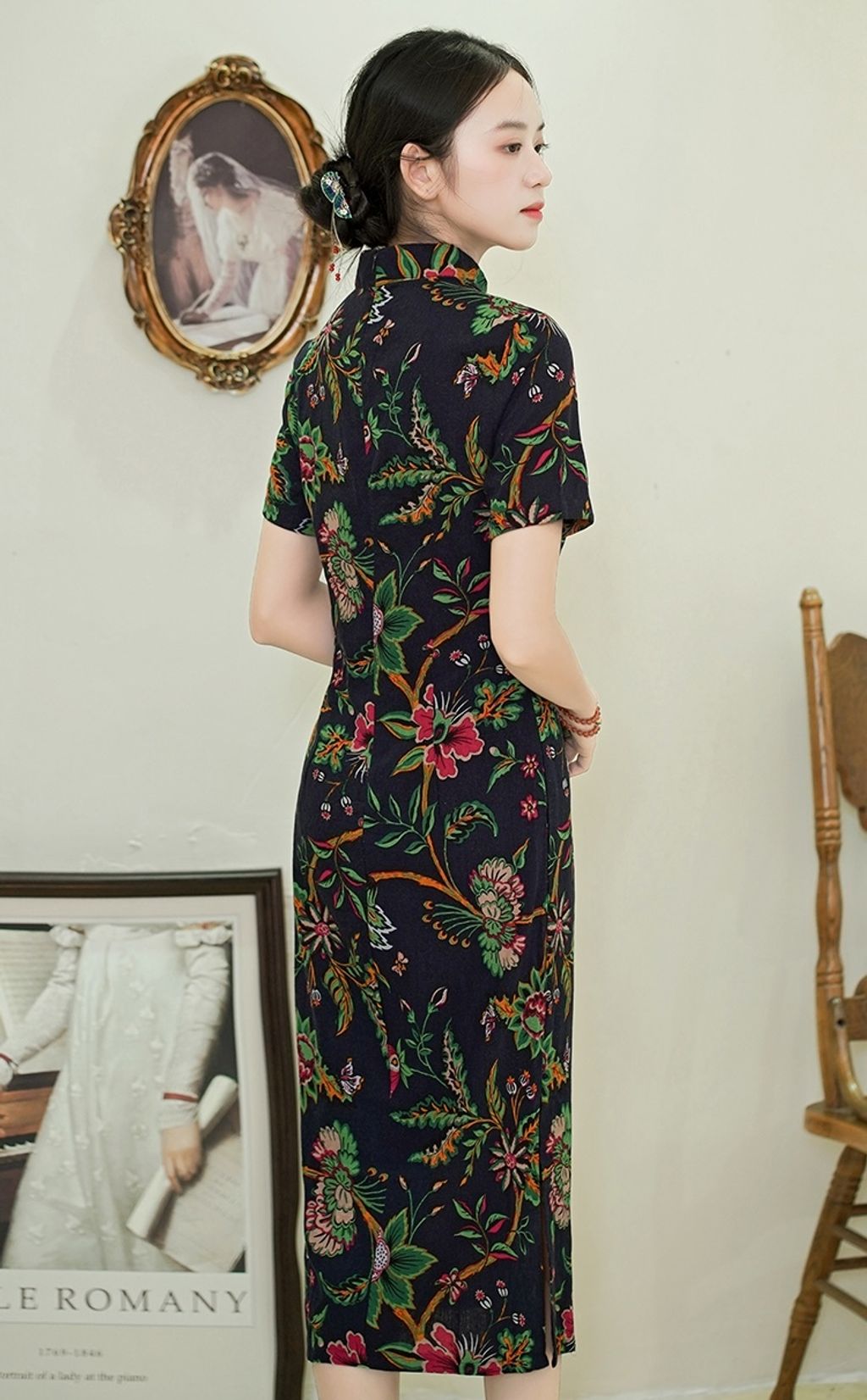 MANDARIN COLLAR FLORAL PRINTED CHEONGSAM DRESS TFT19192