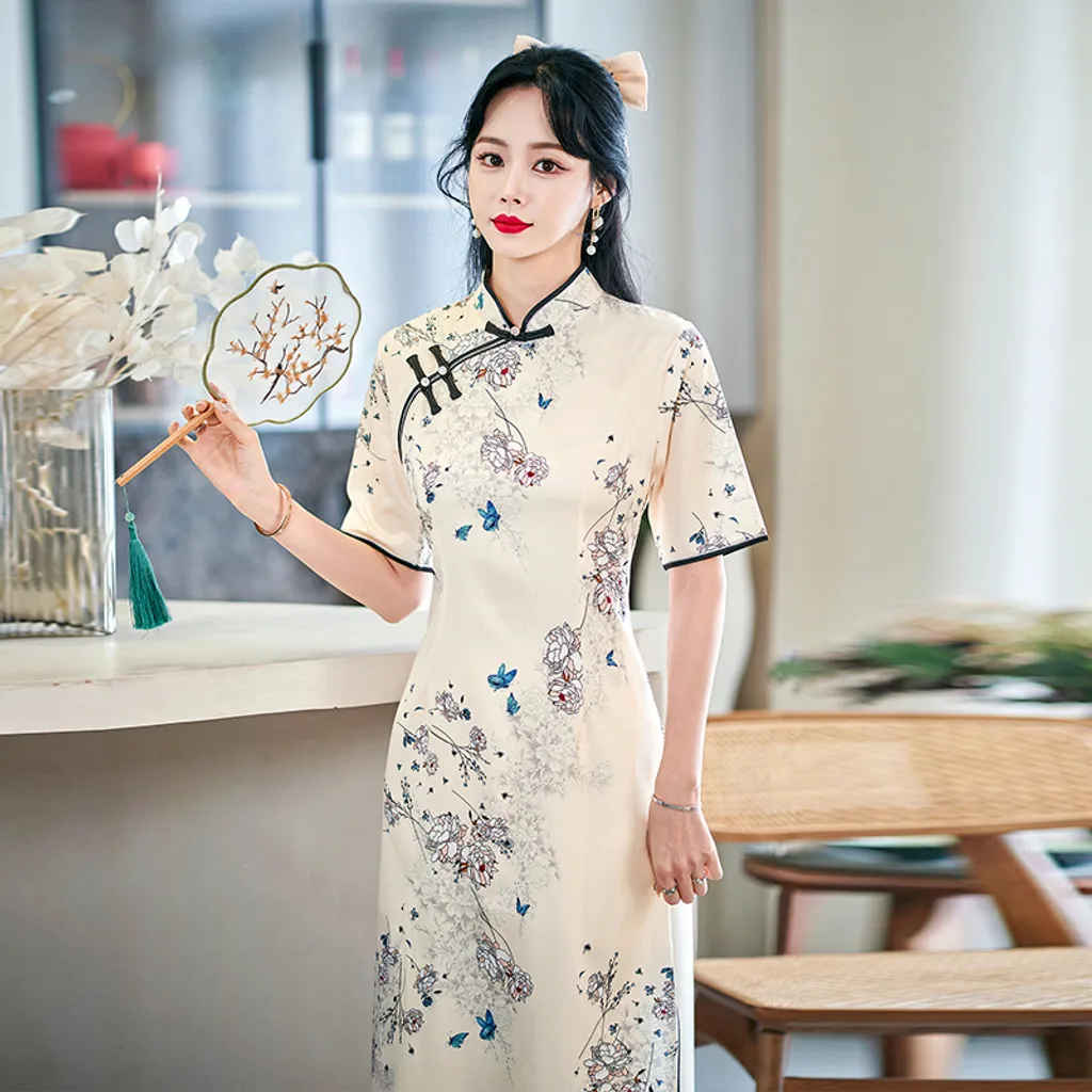 RETRO PRINT CHEONGSAM DRESS TFT18347