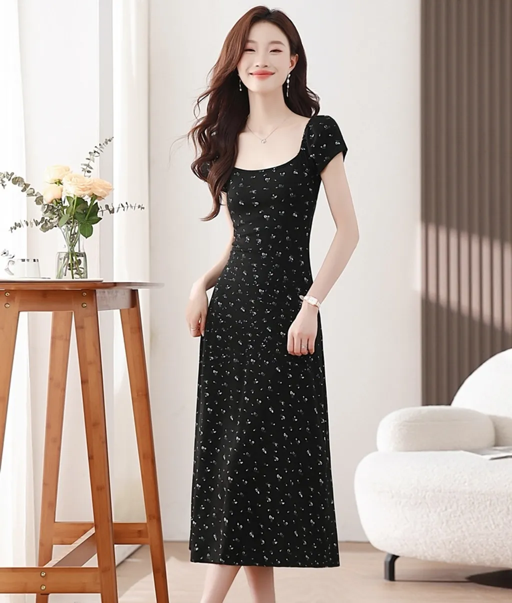 SQUARE NECKLINE FLORAL MIDI DRESS TFT19716